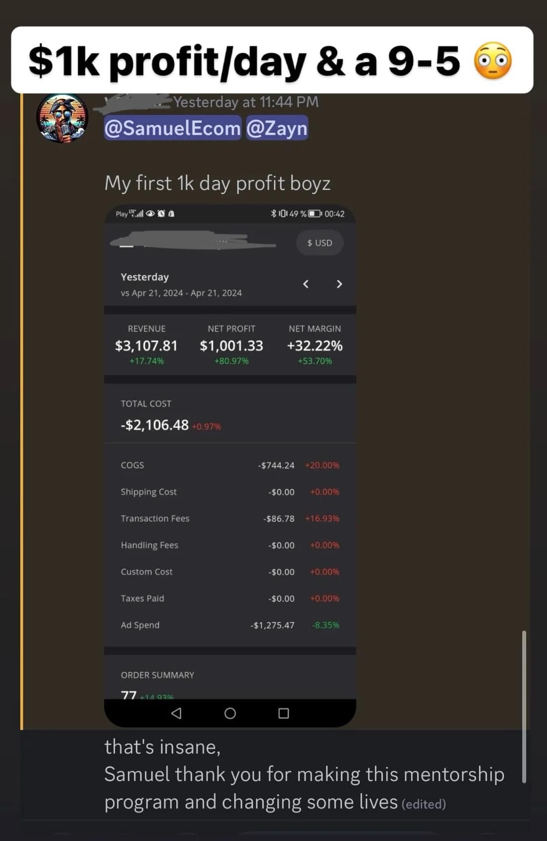 Which allows us to quickly scale to $1,000 a day.